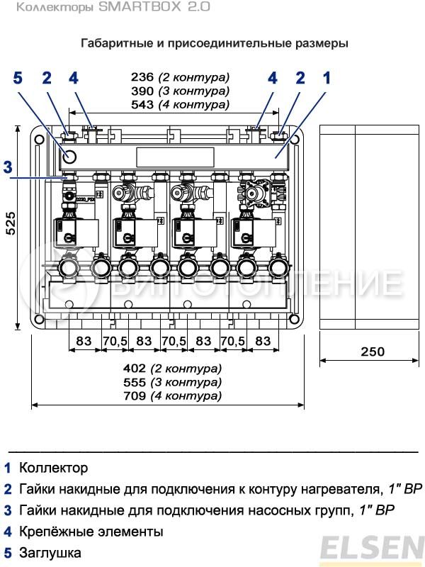 Описание Elsen Комбинированный коллектор SMARTBOX 2.0 (DN 20) с гидрострелкой, 3 контура, с крепежом и теплоизоляцией, 2 м3/ч