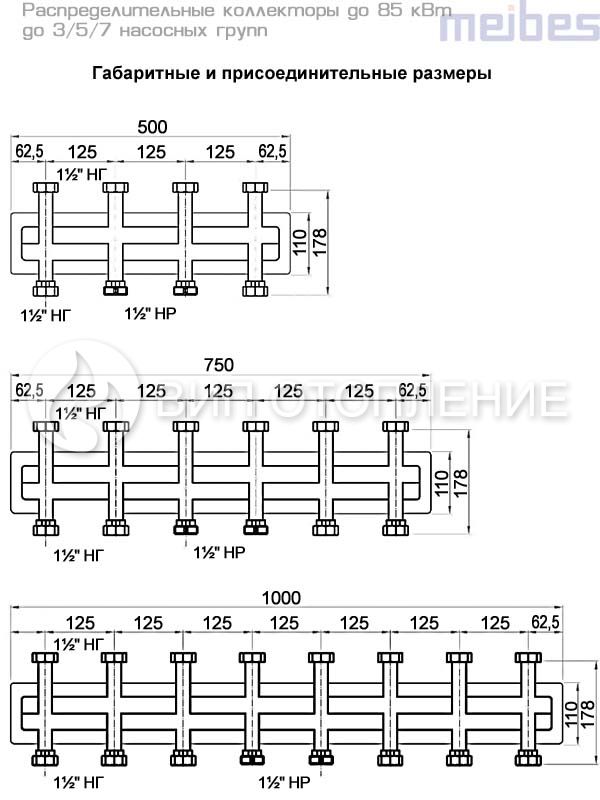 Описание Meibes Коллектор распределительный до 5 насосных групп, нерж. сталь (с комплектом кронштейнов)