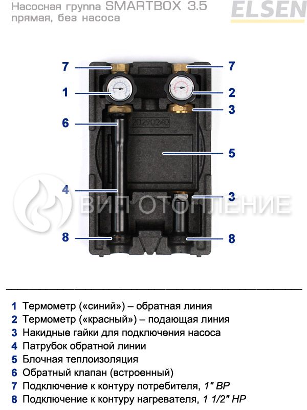 Описание Elsen Насосная группа прямая SMARTBOX 3.5 (DN 25) без насоса