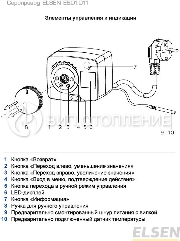 Описание Elsen Сервопривод с контроллером постоянной температуры ES01.011 с дисплеем и выносным датчиком