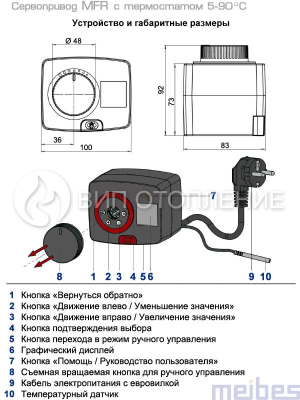 Описание Meibes Сервоприводы MFR с электронным термостатом