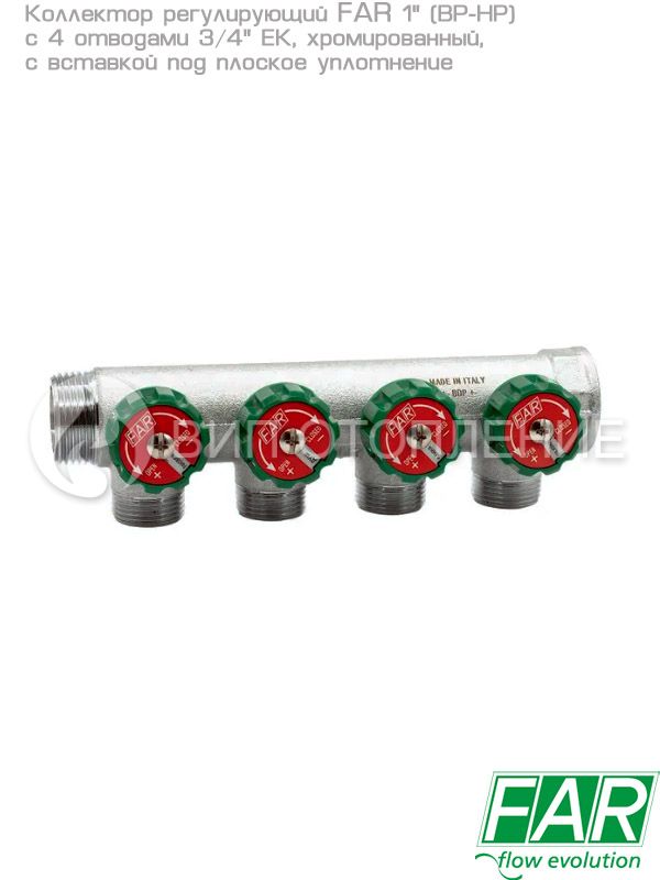 | FAR Коллектор регулирующий 1" (ВР-НР) с 4 отводами 3/4" ЕК с вставкой под плоское уплотнение | FK 3824 134UN |