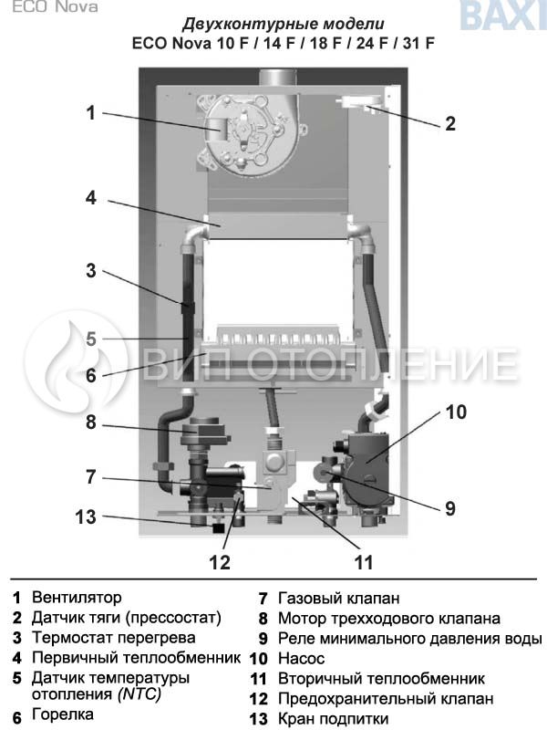 Настенные газовые компактные котлы «Baxi ECO Nova» предназначены для отопления помещений и приготовления горячей хозяйственно-бытовой воды. Гидравлическая группа выполнена из латуни, что выгодно отличает данные приборы от других моделей эконом-класса. Характеризуются небольшими размерами, легкостью в установке, использовании и обслуживании.