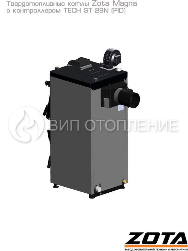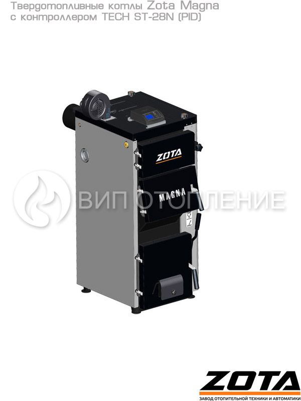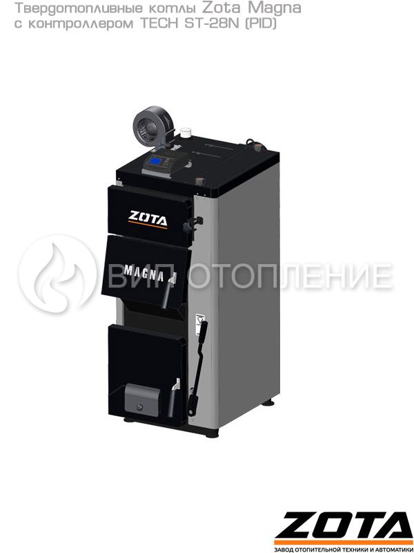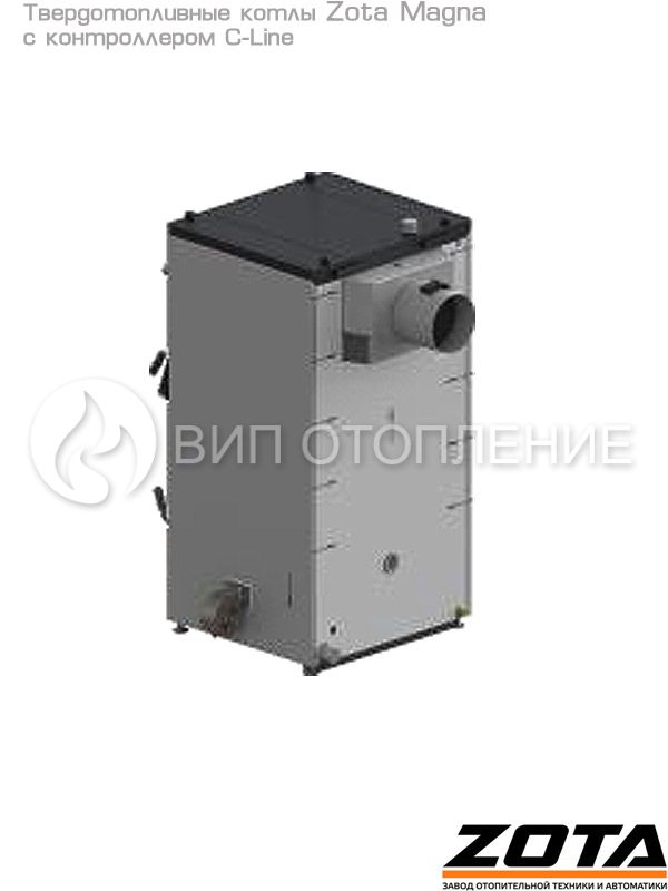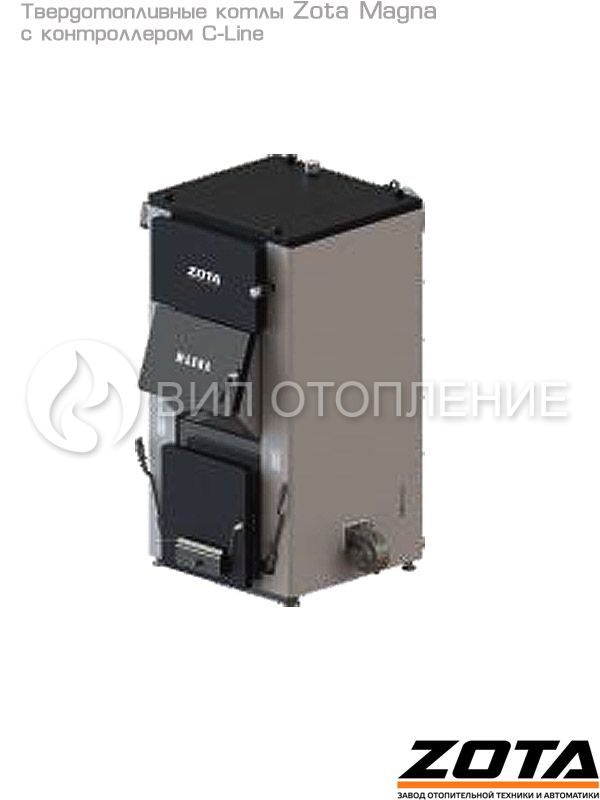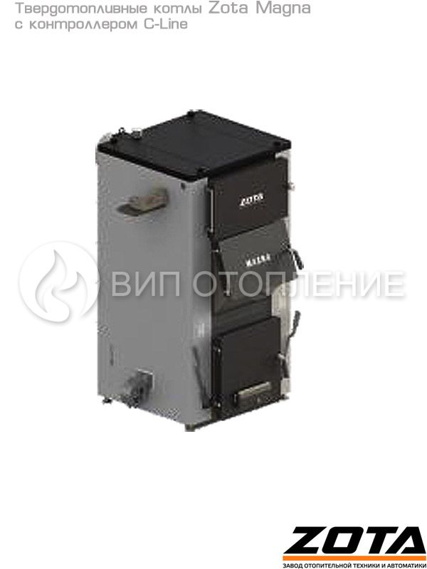 Стальные твердотопливные полуавтоматические котлы «Zota Magna» предназначены для теплоснабжения индивидуальных жилых домов и зданий коммунально-бытового назначения, оборудованных системой водяного отопления с принудительной циркуляцией. Изготавливаются в исполнении для умеренных и холодно-климатических зон. Конструкция котлов позволяет работать в системах с давлением теплоносителя до 3 бар и максимально допустимой температурой 80 °C. В линейке представлены 3 модели мощностью 60, 80 и 100 кВт. Обновленные модели комплектуются контроллером «C-Line».