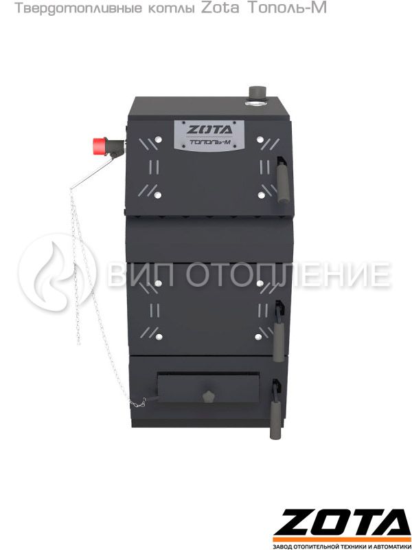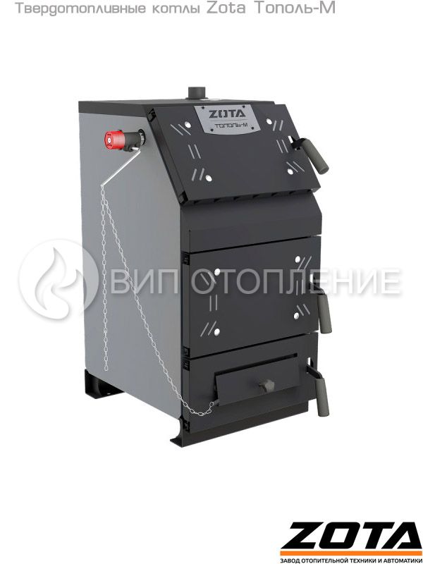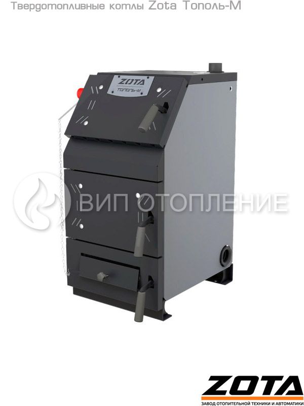 Твердотопливный котел «Zota Тополь-М 30» мощностью 30 кВт предназначен для теплоснабжения индивидуальных жилых домов и зданий коммунально-бытового назначения площадью до 300 м2, оборудованных системой водяного отопления с принудительной или естественной циркуляцией. Конструкция котла позволяет работать в системах с давлением теплоносителя до 3 бар и максимально допустимой температурой 85 °C.