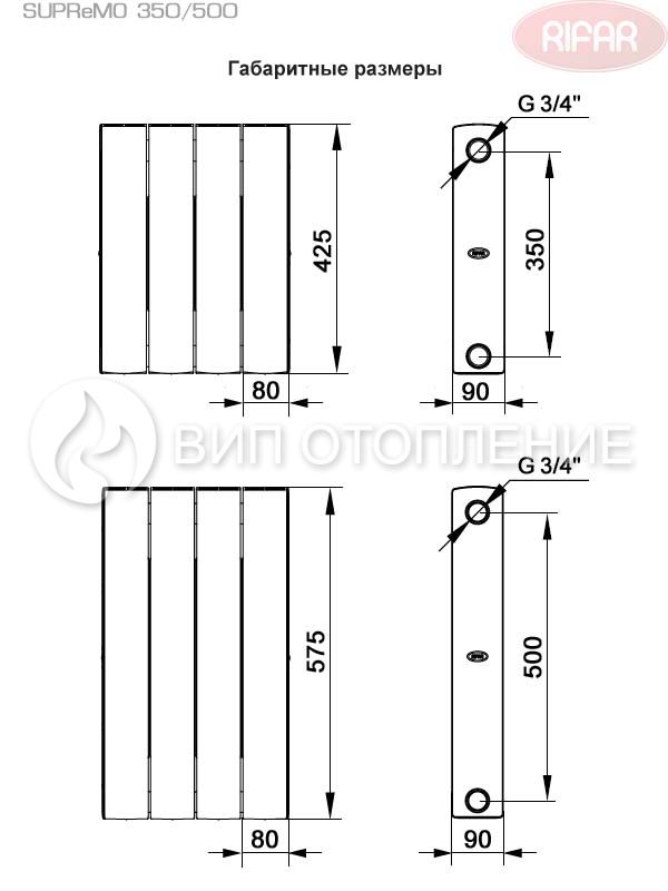 | Rifar SUPReMO 500 Ventil 4 секции | RIFAR SVR 500-4 | 808 |