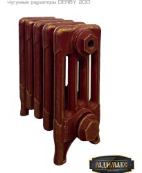 Модель «DERBY 200-9» может быть выполнена как в напольном, так и настенном варианте. Радиатор для напольной установки производится с литыми ножками. Прибор в настенном исполнении крепится на стену с помощью специальных кронштейнов (приобретаются дополнительно).