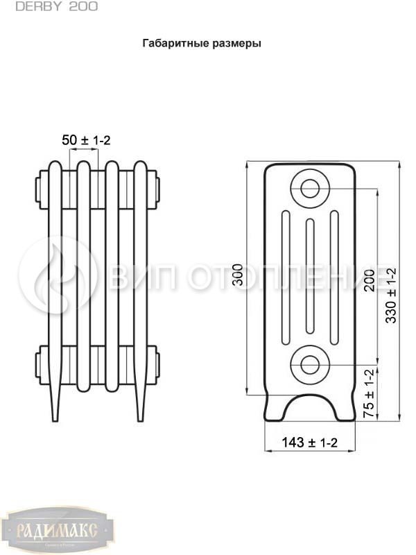 Радиатор чугунный секционный «РАДИМАКС DERBY 200-9» предназначен для применения в системах водяного отопления жилых, административных и общественных зданий. Рассчитан на эксплуатацию при максимальной температуре теплоносителя 110 °С и рабочим давлением до 10 атм. Прибор испытан на заводе давлением не менее 16 атм. и опрессован для выявления возможных протечек и скрытых дефектов.