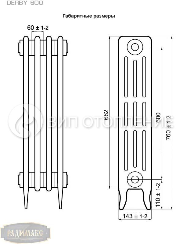 Радиатор чугунный секционный «РАДИМАКС DERBY 600-9» предназначен для применения в системах водяного отопления жилых, административных и общественных зданий. Рассчитан на эксплуатацию при максимальной температуре теплоносителя 110 °С и рабочим давлением до 10 атм. Прибор испытан на заводе давлением не менее 16 атм. и опрессован для выявления возможных протечек и скрытых дефектов.