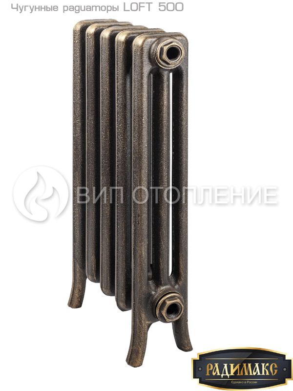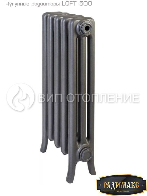 Радиатор чугунный секционный «РАДИМАКС LOFT 500-10» предназначен для применения в системах водяного отопления жилых, административных и общественных зданий. Рассчитан на эксплуатацию при максимальной температуре теплоносителя 110 °С и рабочем давлении до 10 атм. Прибор испытан на заводе давлением не менее 16 атм. и опрессован для выявления возможных протечек и скрытых дефектов.