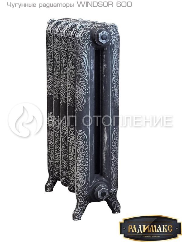 Радиатор чугунный секционный «РАДИМАКС WINDSOR 600-10» предназначен для применения в системах водяного отопления жилых, административных и общественных зданий. Рассчитан на эксплуатацию при максимальной температуре теплоносителя 110 °С и рабочим давлением до 10 атм. Прибор испытан на заводе давлением не менее 16 атм. и опрессован для выявления возможных протечек и скрытых дефектов.