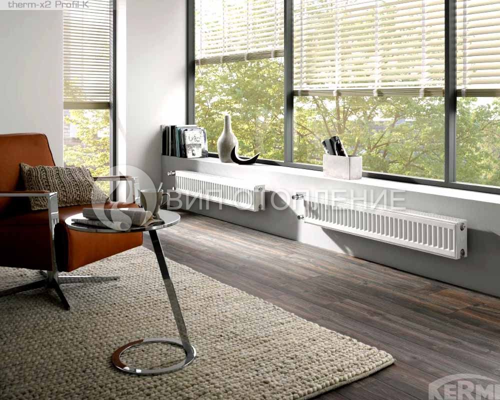 Компактные профильные радиаторы «Kermi» серии «therm-x2 Profil-K» – это инновационные энергосберегающие отопительные приборы бокового подключения, подходящие для всех современных систем теплоснабжения. Они являются универсальными по совместимости с любыми энергоэффективными источниками тепла, будь то конденсационные котлы, пеллеты, тепловые насосы, солнечные коллекторы или центральное отопление. Радиаторы предназначены для закрытых систем с принудительной рабочей циркуляцией, рабочее давление в которых не превышает 10 бар, а температура теплоносителя достигает максимум 110 °C. Производятся в России.