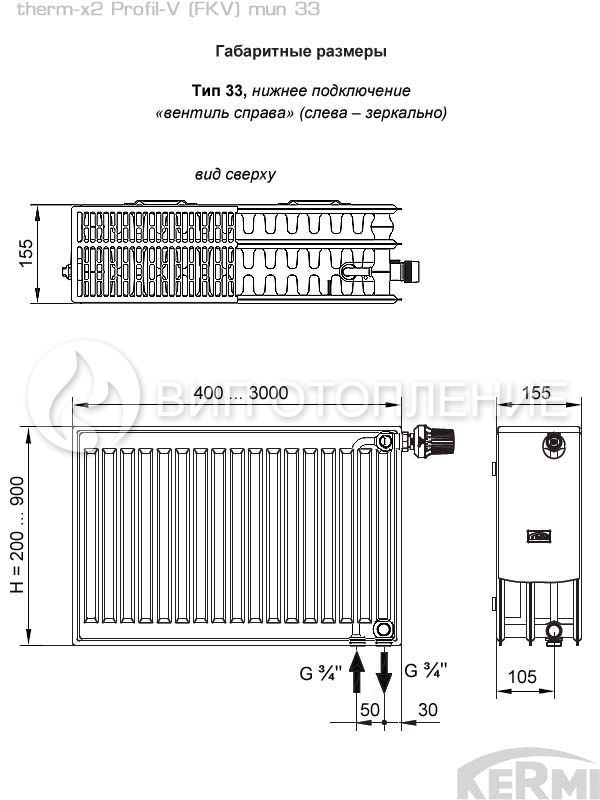 Описание Kermi FTV тип 33, 300×1800, x2 Inside (Россия)