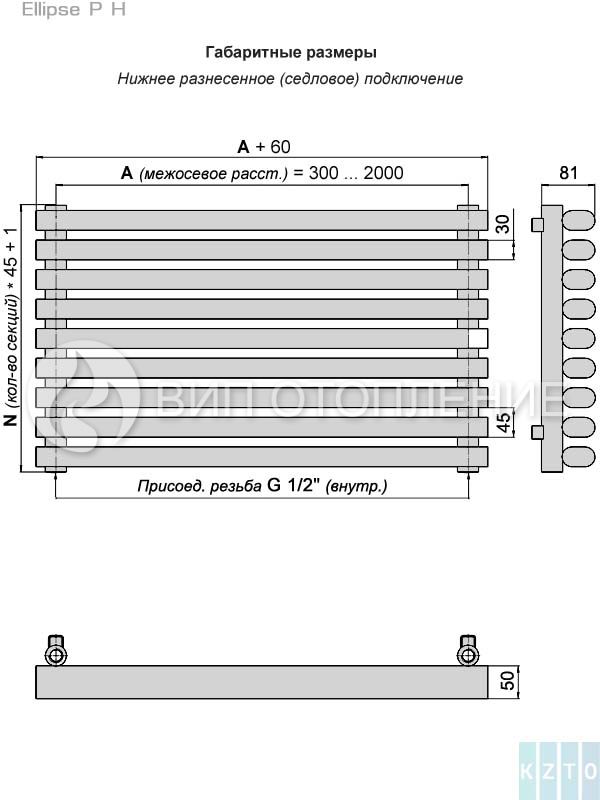 КЗТО Радиатор трубчатый Ellipse P H 2000-3 цвет белый
