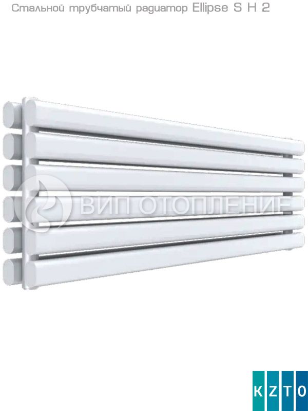 Стальные трубчатые радиаторы «Ellipse S H 2» – серия двухрядных отопительных приборов новой линейки «Ellipse» с овальными колонками от «КЗТО». Выпускаются в горизонтальном исполнении. Предназначены для одно- и двухтрубных систем отопления сухих жилых строений, общественных и производственных зданий с рабочим давлением до 15 атм и температурой теплоносителя до 120 °C.