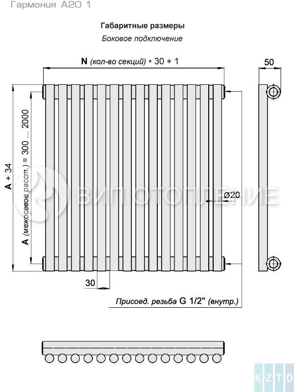 Основные особенности и преимущества радиатора «Гармония А20 1-2000 21 секция»: