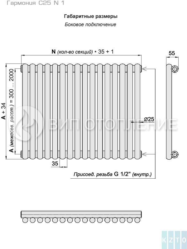 КЗТО Радиатор трубчатый Гармония С25 N 1-2000 25 секций цвет белый