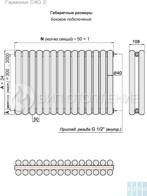 КЗТО Радиатор трубчатый Гармония С40 2-300 34 секций цвет белый