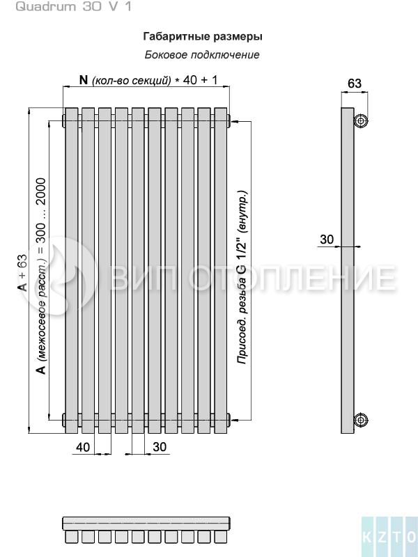 КЗТО Радиатор трубчатый Quadrum 30 V 1-300-25 цвет белый