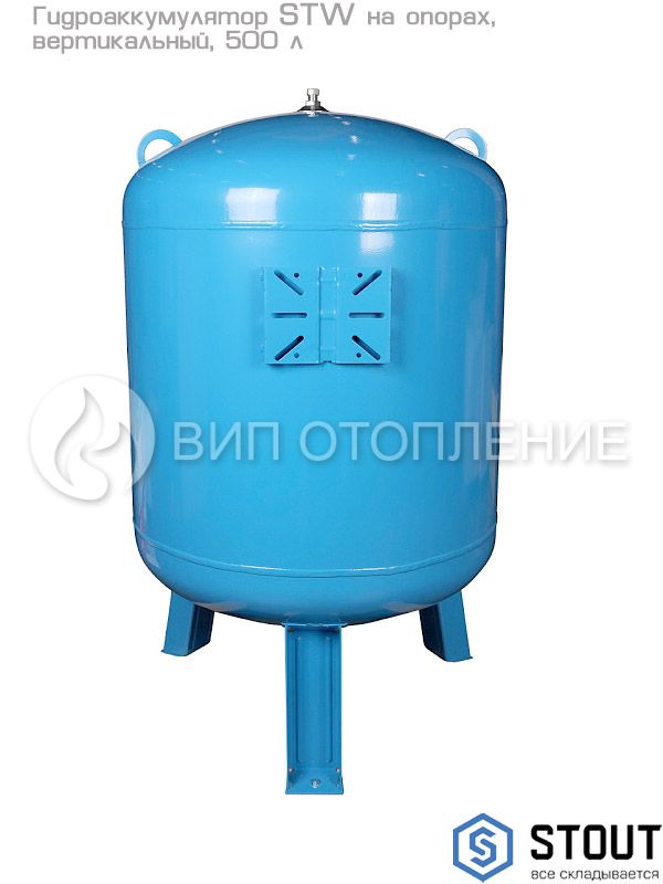 Описание Гидроаккумулятор Stout STW вертикальный на опорах, 500 л