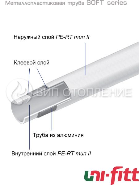 Uni-fitt Труба металлопластиковая SOFT series PE-RT/Al/PE-RT 20x2.0 (бухта 100 м)