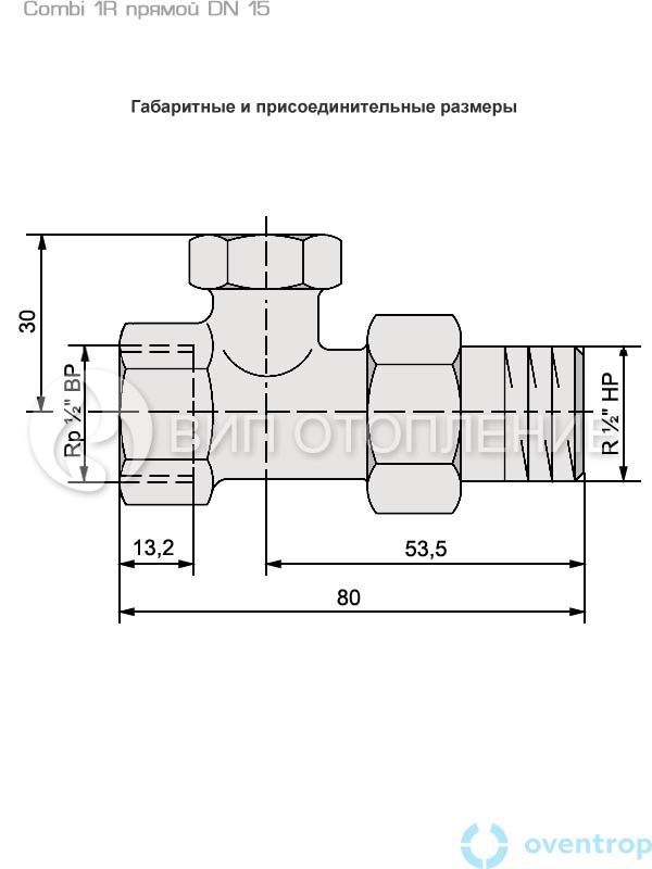 Описание Oventrop Вентиль на обратную подводку Combi 1R DN 15, 1/2", прямой