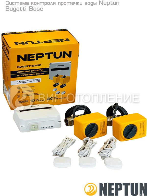Система контроля от протечки воды «Neptun Bugatti Base 1/2"» представляет собой готовый комплект оборудования для своевременного обнаружения и локализации протечек воды в системе водоснабжения и отопления жилых домов, коттеджей, офисных и коммерческих зданий. Рекомендуется для установки в сантехнических помещениях, на кухне, в бассейнах. Система заблокирует подачу воды до устранения причин протечки и проинформирует о возникшей аварии звуковым и световым сигналами.
